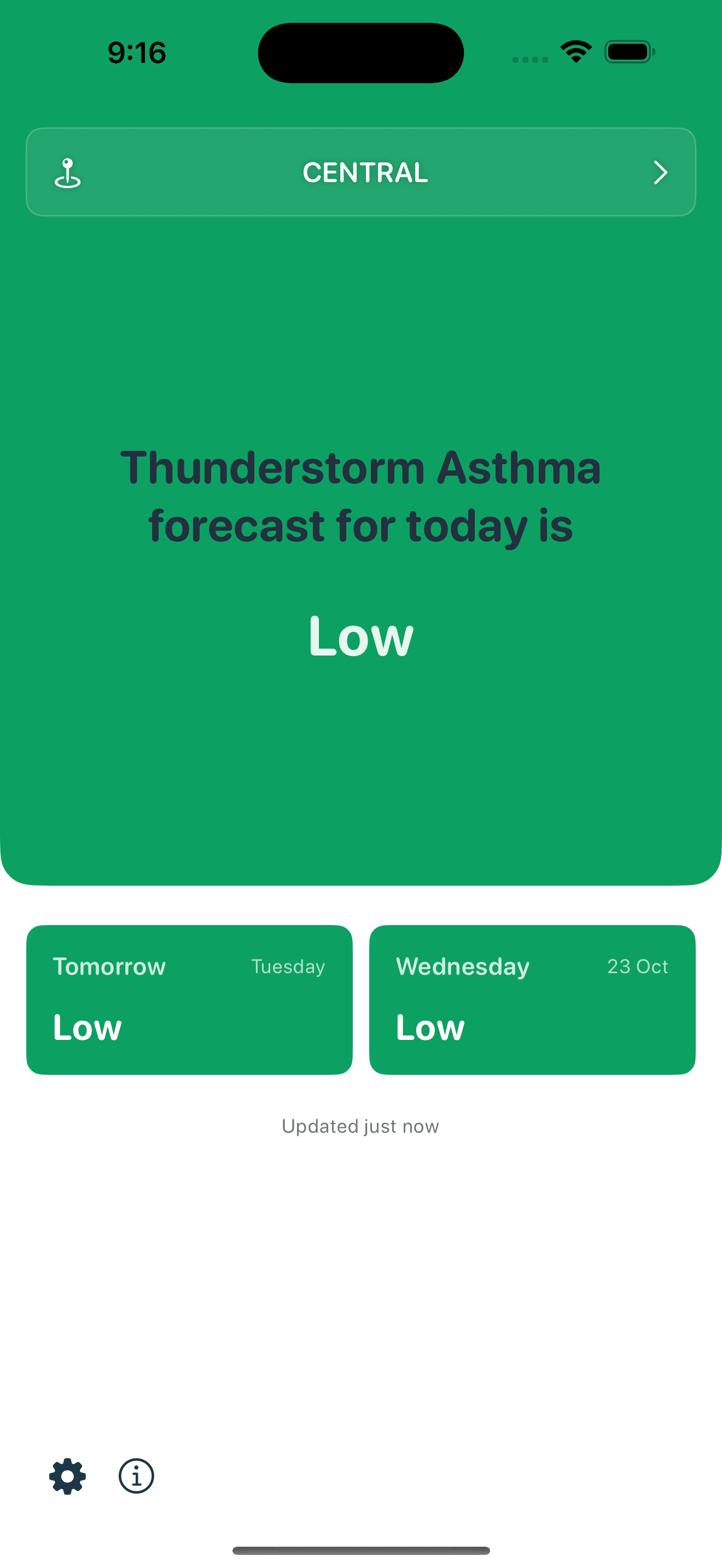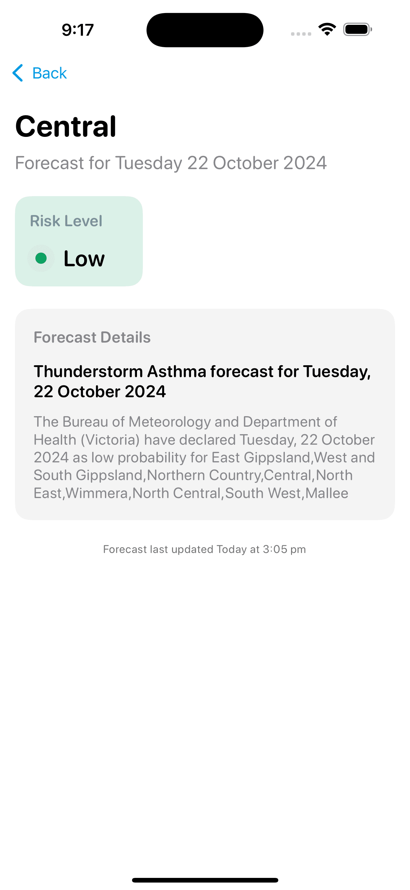 Thunderstorm Asthma provides quick access to Victoria's thunderstorm asthma forecast on your iPhone.